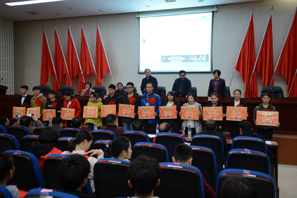 会上,副院长窦铁生宣读了表彰决定。计算机系张丽芝等6名同学获得国家奖学金,邵梁慧等314名同学国家获得国家励志奖学金,临床医学系2015级三年制临床7班等 25个班级被评为“先进班集体”,陈连花等847名同学被评为“三好学生”,汪建波等538名同学被评为“优秀学生干部”。与会领导为受表彰的先进集体、优秀个人颁奖并合影留念。