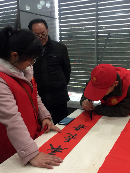 走进敬老山庄养生堂,工作人员热忱地接待了志愿者并表示感谢。志愿者们为老人们带去了橘子、香蕉、桂圆等水果,现场撰写尊老敬老对联,并表演了精心准备的文艺节目。在节目进行的同时,志愿者们还陪伴在老人们身边进行互动。志愿者们的用心付出让步入晚年的老人们一次又一次地露出了开心的笑容。