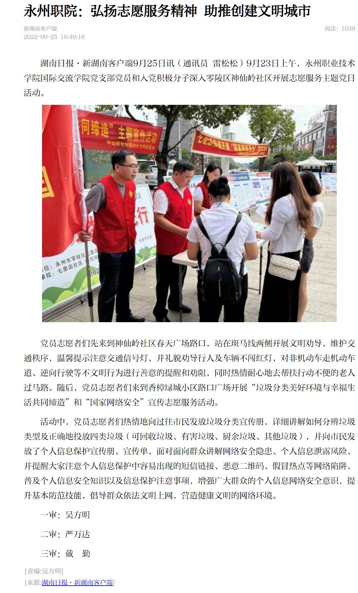 湖南日报·新湖南客户端9月25日讯(通讯员 雷松松)9月23日上午,华人策略研究论坛网址国际交流学院党支部党员和入党积极分子深入零陵区神仙岭社区开展志愿服务主题党日活动。